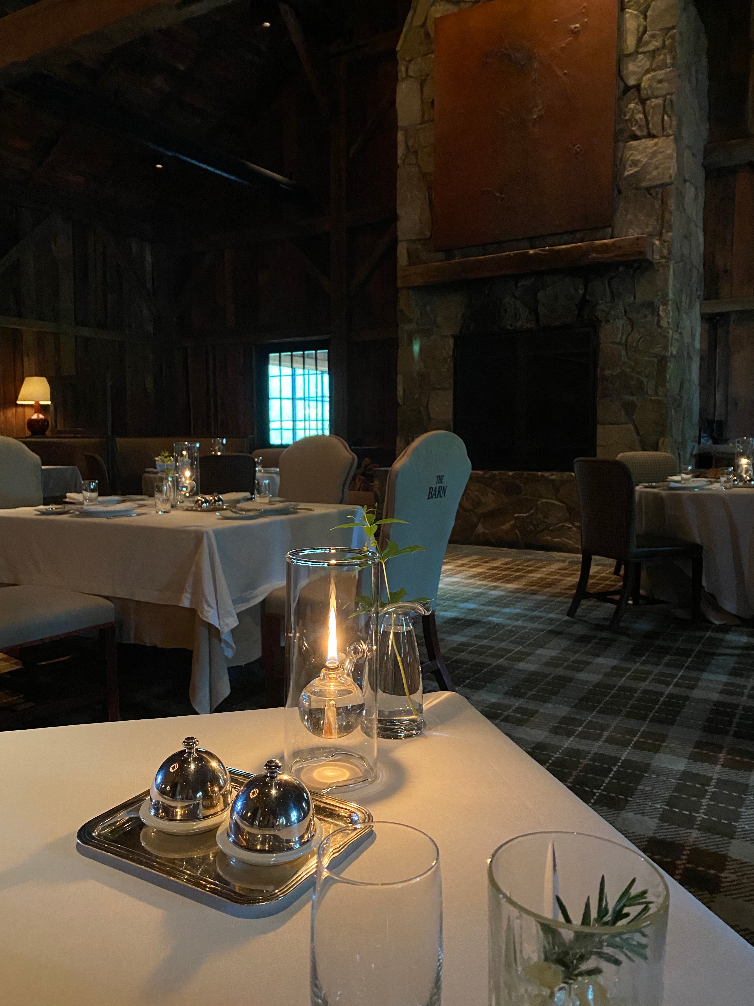 Before long it was time for dinner. While dinner is included with the daily rate, you get to choose whether you want to eat in the Main House (best for families) or The Barn (more formal). We booked both nights at The Barn. It is a very impressive space, and a short distance from our Cottage. There are golf carts that each accommodation has access to throughout the stay, but we chose to walk, attempting to burn some extra calories. There was no shortage of vegetarian options for me, and my husband had plenty of meat to choose from. The food was not only photogenic, but incredibly tasty as well. The offerings change daily so that you can’t get bored if you dine there several days in a row.