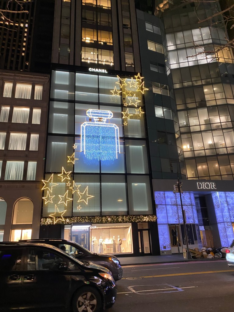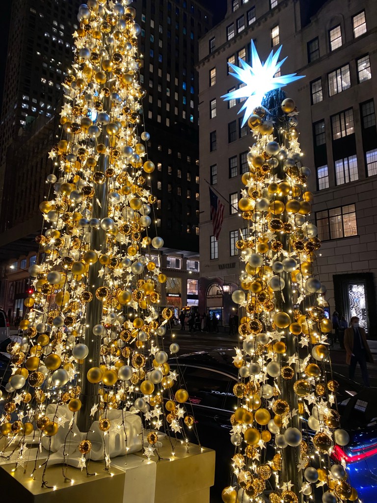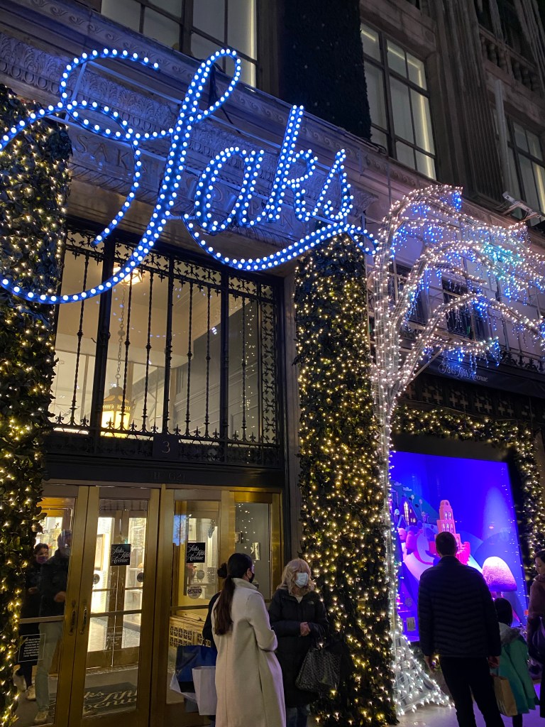 We arrived at the Regency, dropped our car with the Valet, and our bags in the room and set off on foot for dinner at Lamalo, a “Modern Middle Eastern” spot located in the Arlo Nomad Hotel on East 31st Street. The weather was unseasonably warm so we were happy to walk down Fifth Avenue and admire all the fabulous light and window displays. The streets were mobbed, but everyone seemed to be in a festive state of mind. There were testing sites starting to pop up on random corners, which was a sign of the escalating Omicron threat.