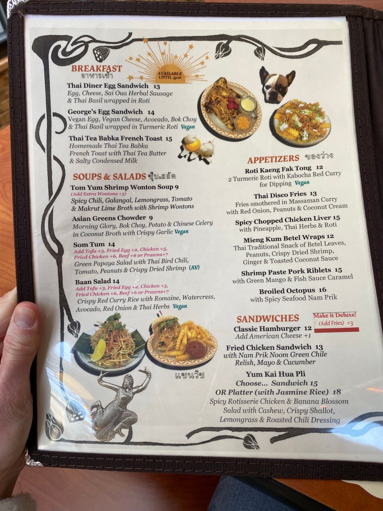 One bit of advice if you are going to Thai Diner, go with a sizable appetite. Everything on the very extensive menu is tempting.
