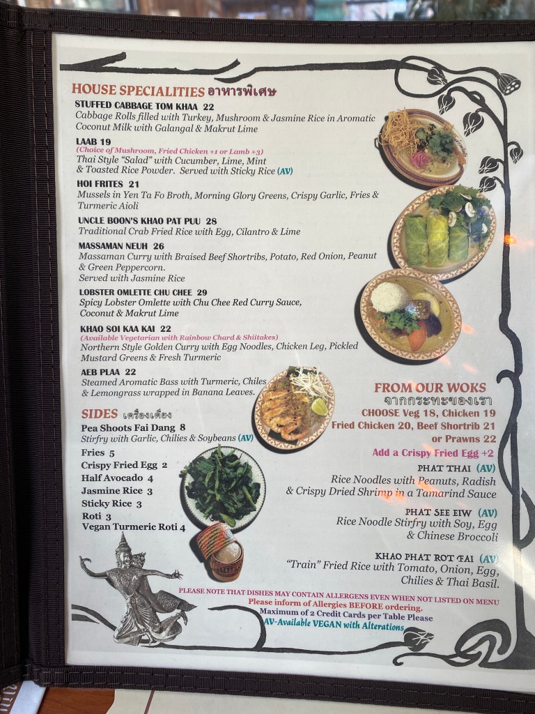 After mulling all the choices we settled on a wide array of flavors and spice levels. The food was incredible! We literally could not stop eating. The Khao Soi in particular was just as good as it was when we had it in Chang Mai (and it was available vegetarian which made me happy)!