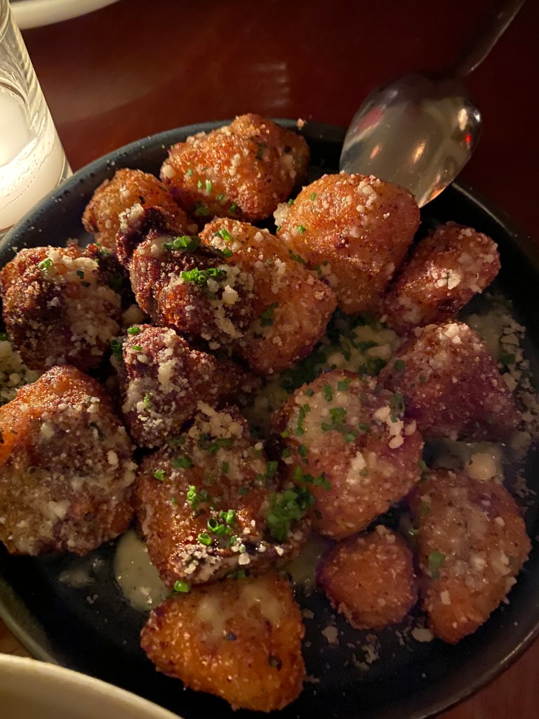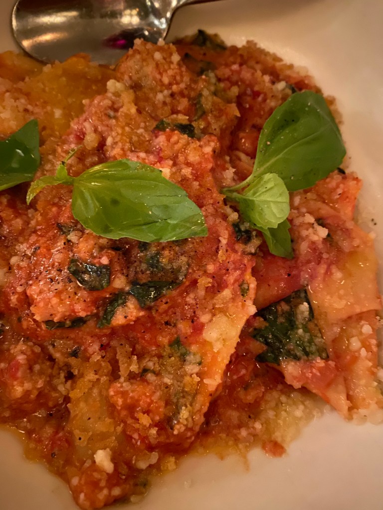 After witnessing the sunset, we made our way to 103 Greenwich street for a much anticipated dinner at Michelin starred Don Angie. Celebrated again and again as one of NY’s best Italian restaurants, we had to work hard to secure a Friday night 7pm reservation. The restaurant was warm and welcoming, and was buzzing with positive energy. The crowd was young and pretty casual. Don Angie is known for their Lasagna for two, but alas, we will have to wait for another visit to try it. The menu is eclectic, and a little off-beat if you go there expecting “traditional” Italian fare, but everything was exceedingly tasty and satisfying. The Gnocchi in particular were ethereal, and the Chrysanthemum salad was delicately dressed while smothered in Parmigiano Cheese – super satisfying. The Japanese potatoes were more like the best imaginable tater tots. Don Angie is worth the hype, and I would like to return with a larger group so that we could try more things.
