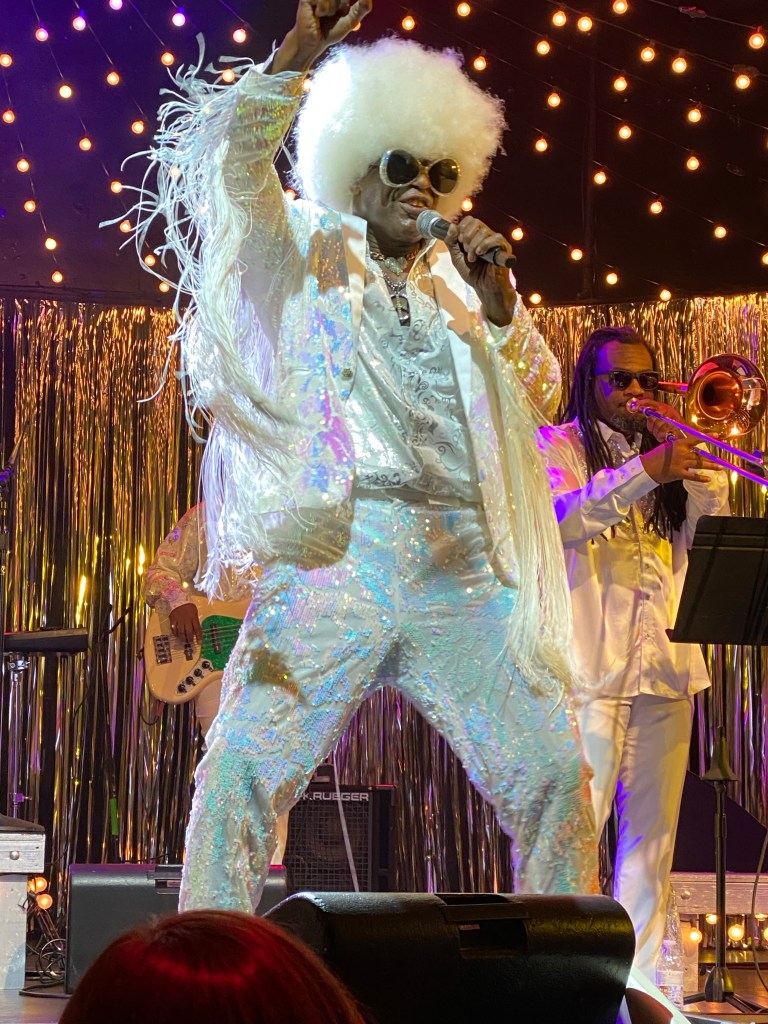 The final stop ion our whirlwind NYC weekend was seeing Everett Bradley performing as his alter ego Holidelic at the Lucille Lortel Theater . Bradley is a percussionist who tours with the E Street Band as well as Bon Jovi, but also REALLY loves Christmas. The show was campy, fun, and inspirational as his message is kindness and inclusivity.