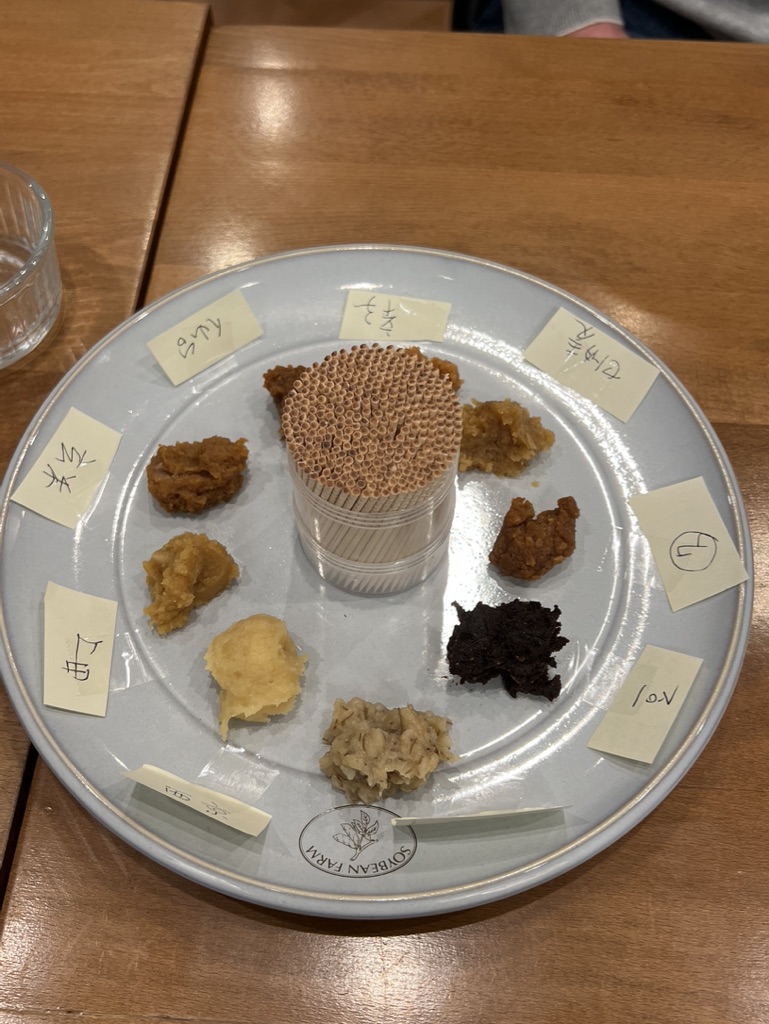 Following Fugu we took a walk over to Soybean Farm where a fourth generation soybean farmer not only sells his artisanal array of Miso pastes, but also prepares dishes for you customised to your favorite Miso flavor profile. We learned all about the health benefits of a daily dose of Miso, and watched as customer after customer stopped in to buy some. In the US we are accustomed to seeing just white or the more flavorful red available in the supermarkets, but there is a whole world of Miso paste available. Similar to a cheese tasting we were able to sample a dozen varieties ranging from mild to very bold.
