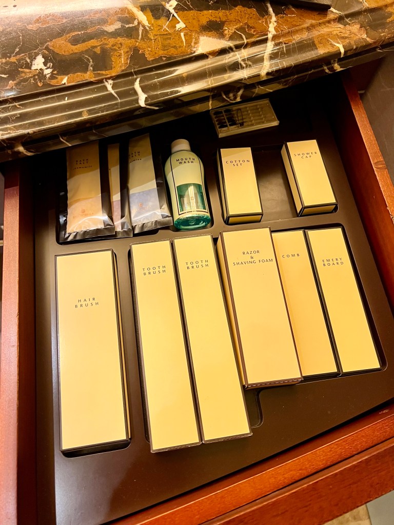With the time change taken into account we landed at about 9 pm the following day. While Japan is welcoming visitors, there are strict requirements concerning Covid vaccinations as well as a host of information needed to enter the country. This delayed immigration a bit, but all in all it was a smooth transition off the plane and into the car that was waiting to take us to our hotel, The Shangri-La. I have stayed in Shangri-La hotels in Singapore (a little dated) and Paris (amazing) but I had heard the property in Tokyo was in an excellent location (true) and was top-notch in service and amenities (also true).