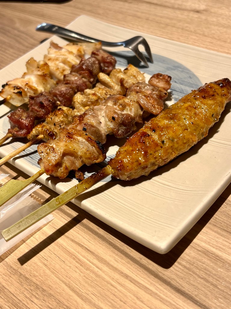 Because we were still full from our day long eating adventure we decided to find a local Izakaya where we could enjoy some drinks and small plates. There was no luck in booking something fancier. As we wandered the darkened streets we realized we might have to settle for sustenance rather than anything special. We came upon one restaurant that specialized in chicken that was mobbed. It clearly had the biggest crowd so we figured it had to be ok. Mind you my fowl averse son had fulfilled his chicken quota for the year (so he just had beer) and luckily I was still satiated so I had a bowl of white rice.