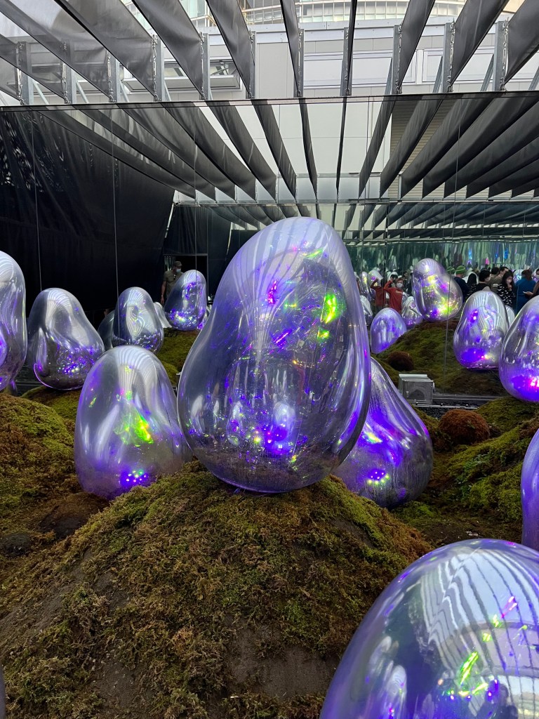 After our entertaining lunch we found our way to Team Lab Planets Tokyo a super cool immersive experience that had been recommended to us by many people, the best part was they had ticket availability on New Years Day! If you do plan on going, be sure to book your spots well in advance, this is a popular attraction. The exhibit consisted of multiple experiences to walk through including several water features. It was essential to be barefoot and be able to roll your pants up to knee level so you did not get soaked. There were also several rooms with mirrored floors, so there were shorts available to rent in case you were wearing a skirt and didn’t want to reveal too much.