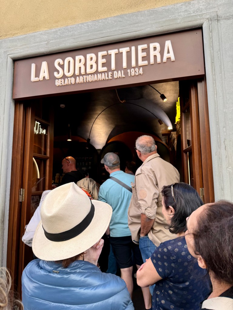 Thankfully the shop was just around the corner from the Palazzo so we were able to drop our very large jacket-filled bags and continue on our way. Following a tip from the doorman we headed towards what he promised would be the most delicious gelato in Florence, La Sorbettiera, and he was spot on. As we caught sight of the large crowd spilling out of the small shop we knew we were in the right place, and the fact that the majority of them were chatting in Italian was a good sign. As we finally got to the head of the line I opted for a flavor that was new to me, Timballino (Florentine custard, chocolate and hazelnuts), along with my tried and true extra dark chocolate. There were no stabilizers in this artisanal gelato, it started melting as soon as we got outside which meant we had to devour it quickly, not a challenge as it was amazing!! Even my husband who doesn’t love gelato like I do finished off his salted caramel before I could have a proper taste. I believe there are several locations in Florence, if you find yourself remotely close to one, make the detour!