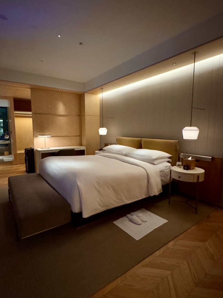 Following our delectable meal we took cabs to our hotel whose luxury was the perfect contrast to our last hotel in Kurashiki. The Ritz-Carlton is brand new and hands down the nicest hotel in the city. Anticipating a need for some real splendor I booked us a suite with club access (along with a large room for our boys, also with club access) which was truly appreciated when we arrived with our bags following dinner 6 hours later than anticipated. We were quickly whisked upstairs for check- in and after dinner drinks; and I was very happy.
