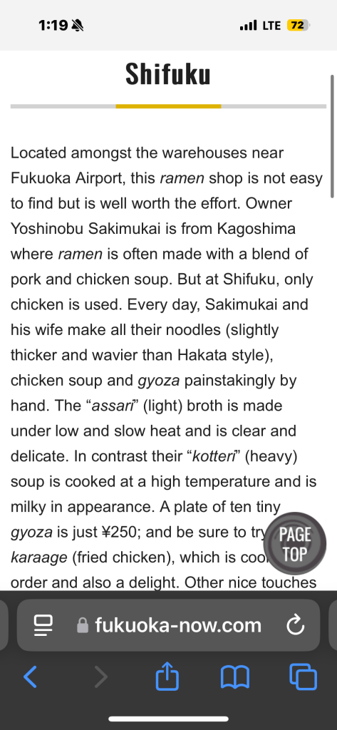 Although our final meal in Fukuoka was not my favorite, I really loved this city; our hotel was terrific, the shopping was outstanding and we had some unbelievable food (the sushi dinner in particular).