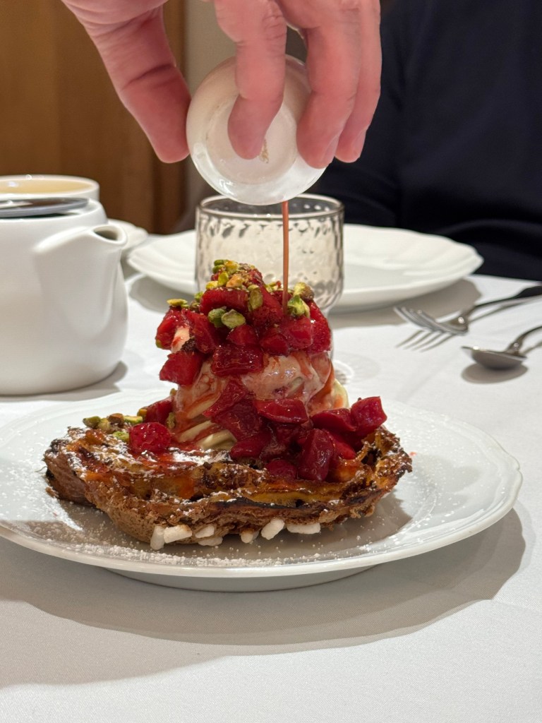 Our initial restaurant choice turned out to be slightly too casual (Mr. T Los Angeles) so we did a quick pivot and decided to meet at Stella West Hollywood which had a better vibe. Stella is a lovely space which features a weekend brunch with an Italian flair. The highlight was most certainly the Panettone french toast sundae made with Roy’s Panettone. Stella is very large and has several dining rooms including a sprawling one downstairs. It was quiet during brunch time but I bet it is hopping for dinner.