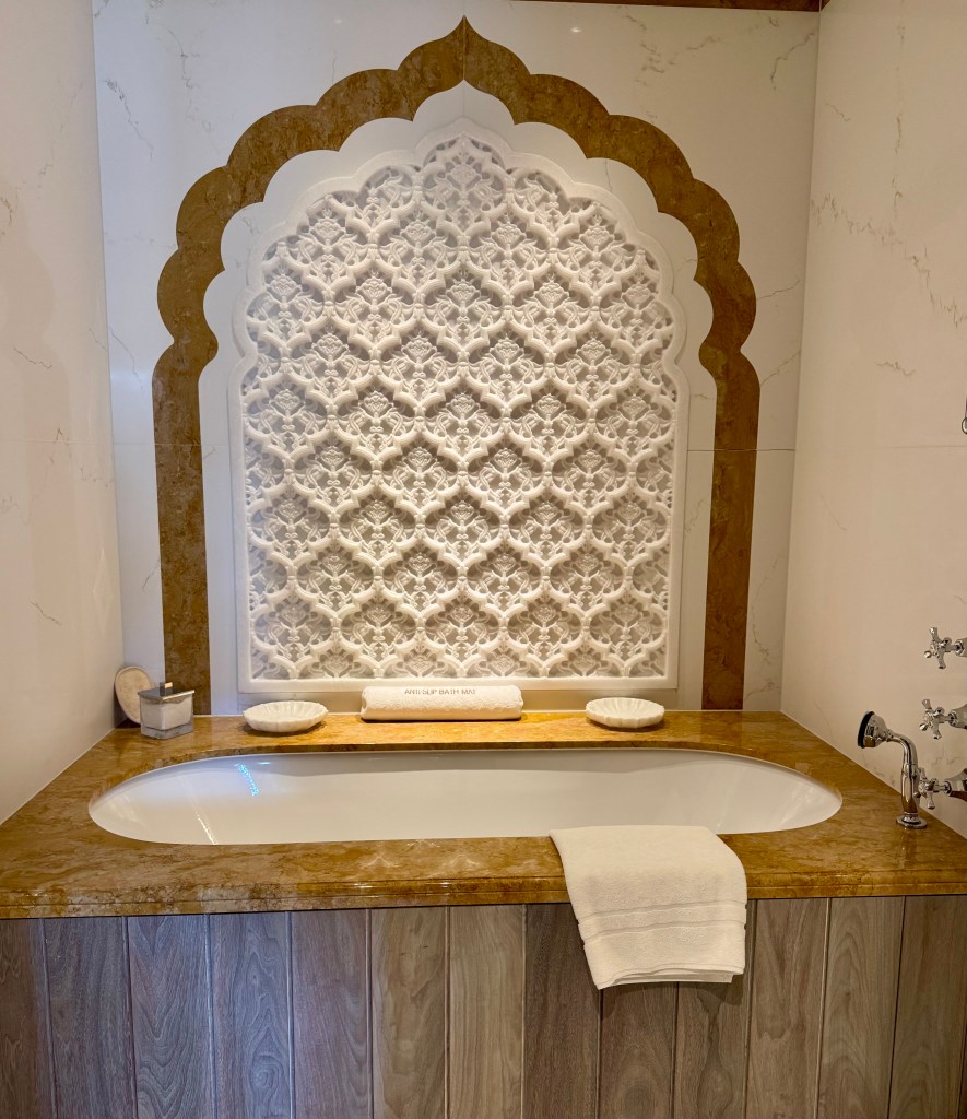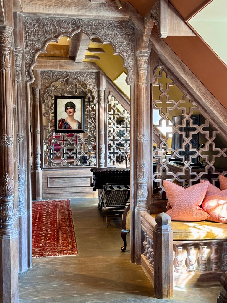 As soon as we finished our lunch we were told that our room was ready for us! We checked in and headed up to the fifth floor with great anticipation. I had a preview of our specific room a few months ago when I came across a magazine article highlighting a collection of Suites at the hotel that were built in cooperation with Turquoise Mountain, an organization supported by King Charles whose mission is to sustain and support artisans in Afghanistan and the Middle East so that the unbelievable craftsmanship of yesteryear is not lost.