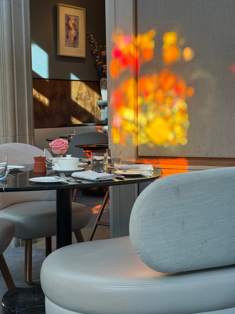 There will be a follow-up post outlining all the fun we had in London as well as lots of great restaurant recommendations, but for this post I am going to stay focused on the Connaught. Jean-Georges at The Connaught serves three meals a day and while I can’t speak to lunch or dinner, breakfast was consistently delicious. We dined each day in the glassed-in terrace overlooking Mount Street and the light shining through the stained glass couldn’t help but make you smile.