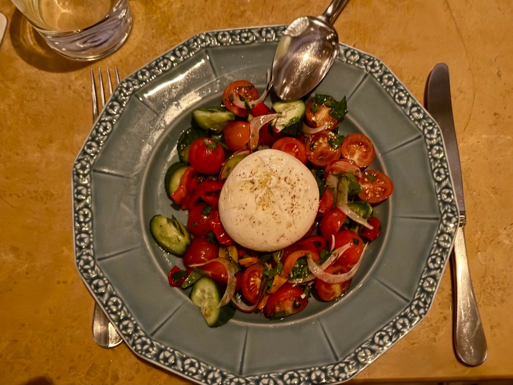 In addition to the disappointing breakfast at the hotel we did manage to squeeze in a bunch of meals during our short stay, starting with a quick healthy lunch at the local branch of Pura Vida. Better than my Jen’s Herb salad (which was really quite satisfying) was the people watching, which did not disappoint!