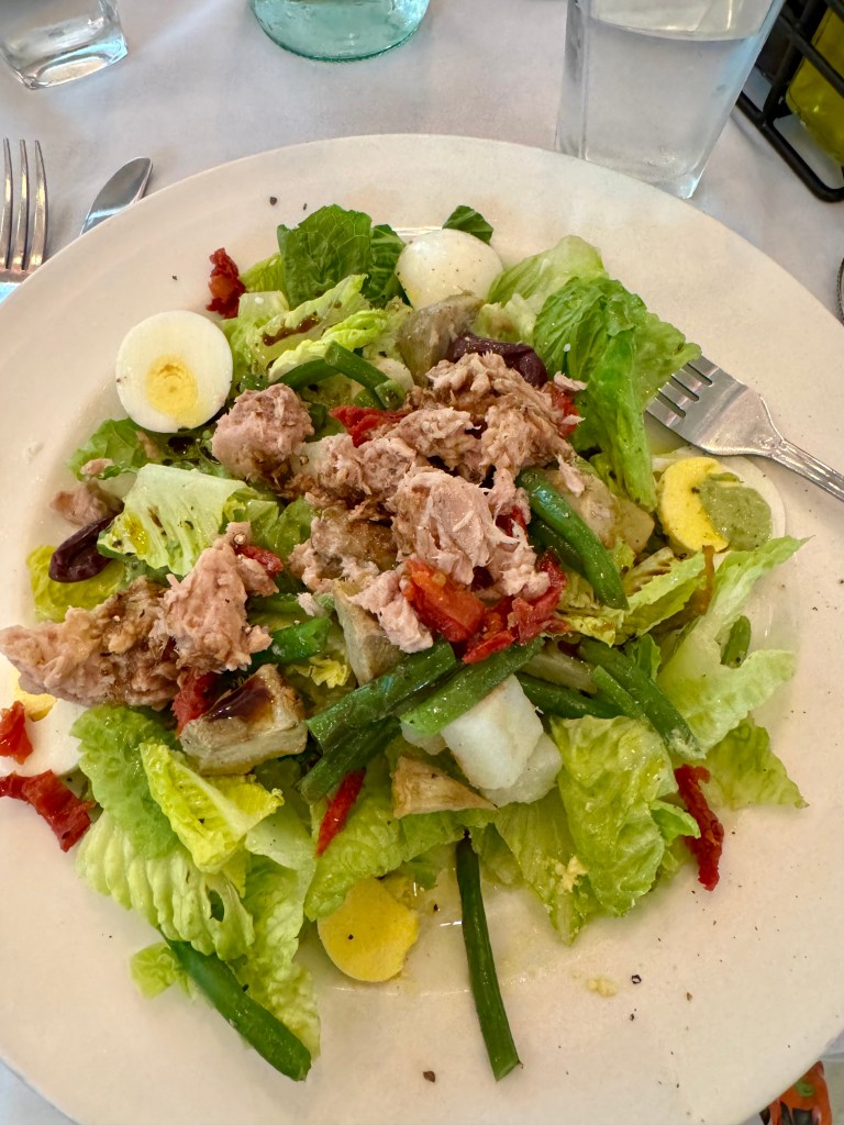 Another restaurant in a popular shopping destination (the Bal Harbour Shops) that we visited was Carpaccio which also featured excellent people watching as well as large portions of Italian American specialties and competent service. In truth the Niçoise Salad (called the St. Tropez here) was fine aside from the unpleasant oily artichoke bits that were a surprise. I was able to substitute Italian tuna for the seared fresh tuna which is always my preference.