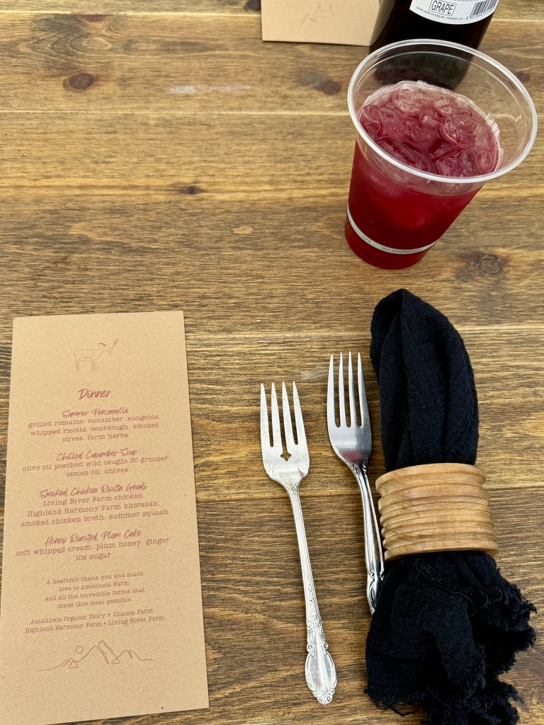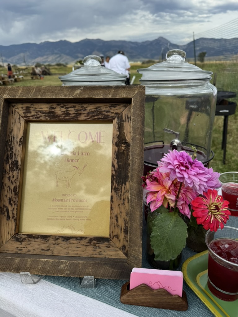 Since we were unable to attend the Outstanding in the Field dinner in Bozeman this summer we booked what we hoped would be a worthwhile substitute, a Farm Dinner presented by Mountain Provisions at Amaltheia Farm which was like a very scaled down version of OiTF. There was a lot of thought and effort put into the event by Chef Emily Hahn, and while it wasn’t on the grand scale of Outstanding in The Field it was a very fun night to connect with fellow foodies in a beautiful setting (complete with loads of goats).