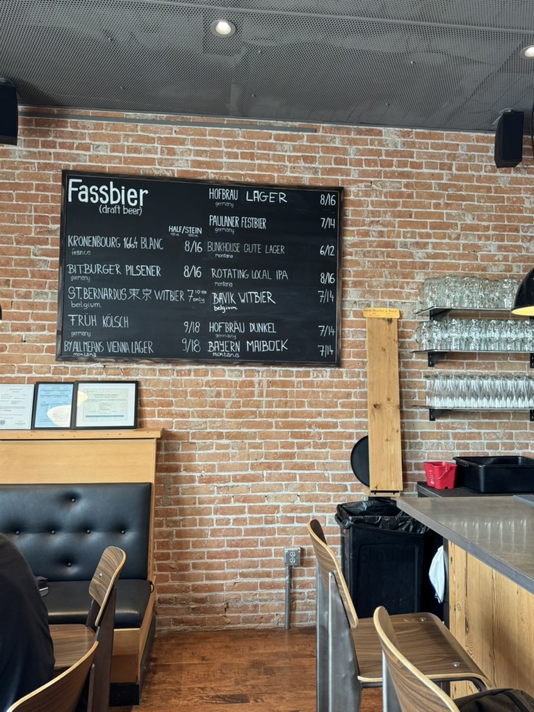 Back to Bozeman and a foray to a new German spot on Main Street (though located on the second floor), Gute Laune (translated as good mood). We are heading to Munich in October so I thought this would serve as a good preview. The food was really quite good, with a sunny, friendly atmosphere. There is a large space that resembles a traditional beer hall in the back, but we dined by the windows in a smaller dining room towards the front. It was our servers first day and she was very amenable and upbeat. We didn’t go all in on the beer drinking as it was early in the day, but the consensus was a desire to come back which is equivalent to a glowing review!
