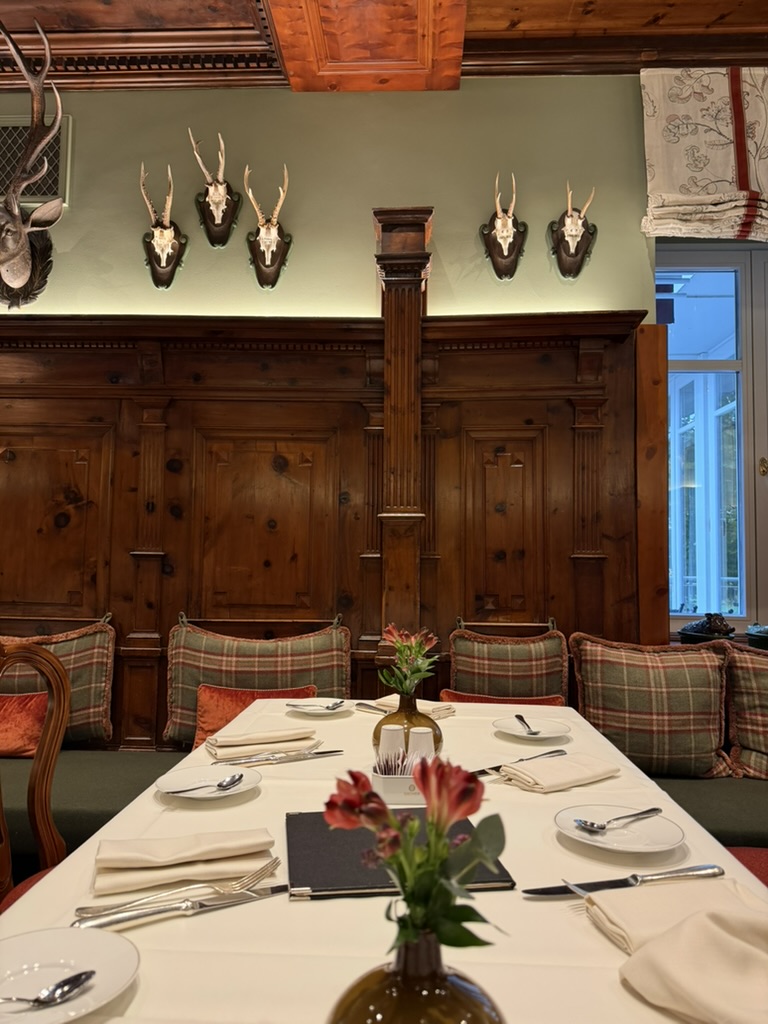 The breakfast room is a classic example of Alpine design, the perfect setting for the Sacher Torte which waited for me at my seat the morning of my birthday. In addition to the torte (I managed to eat much of the icing off my piece) I was also presented with a gluten free pastry that was also delicious. The servers helped serenade me along with my family, the perfect way to start the day. The rest of the breakfast options were fine if not particularly exciting, though the coffee was excellent.