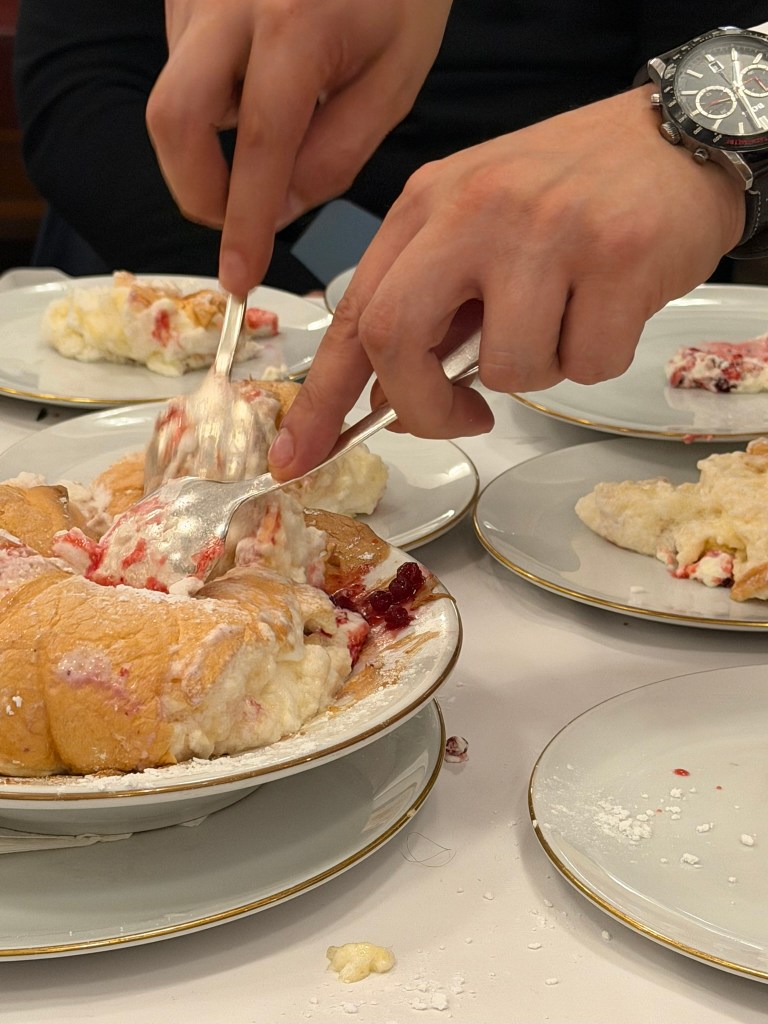 Regardless of the drama the meal was delicious, honestly how could you go wrong with fried meat ( I opted for fish), and french fries?! The highlight was dessert, Salzburger Nockerln, an amazing sweet cloud-like soufflé with raspberry sauce presented to the entire table.
