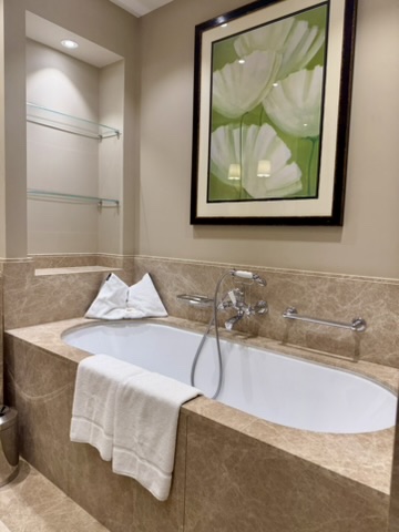 We opted for a Suite and found it to be comfortable and spacious but had an issue with the bathroom which was literally one step away from the left side of the bed, creating issues if one of us were to pay a visit to the facilities in the middle of the night. The black out shades created such darkness that you had to turn on a light or risk injury trying to sneak in quietly. In addition there seemed to be a real concern with housekeeping. During our stay my room was not cleaned until we “reminded” them at reception at about 4 pm upon returning to the hotel. This was the case not only for our room but one of our son’s rooms as well which was not only annoying but disappointing as well.