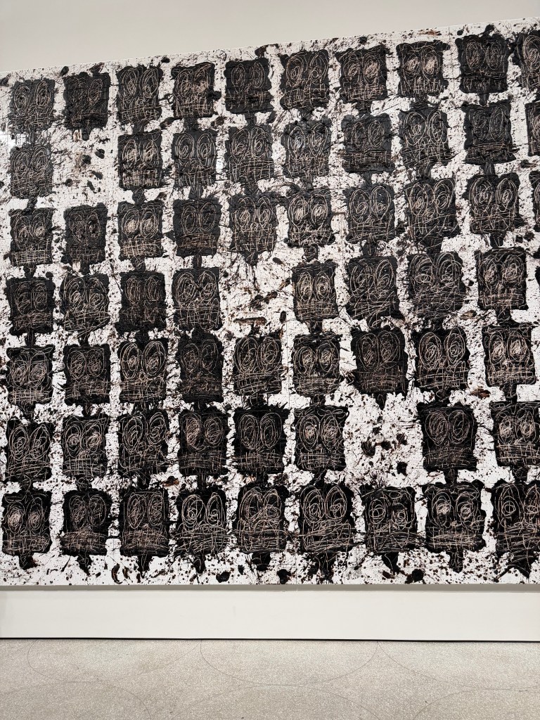 The Guggenheim (whose architecture can’t help but make you smile) currently features an extensive show of Rashid Johnson‘s works entitled A Poem For Deep Thinkers. This show closes January 19th, so if you didn’t get a chance to see it I’m afraid you are out of luck. The works were displayed in a very impressive manner, especially those suspended from the ceiling, but to be honest my husband and I preferred the works from the permanent collection.